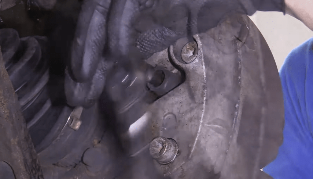 Step 10: Push and twist your slider pins back in, ensuring they’re flush with the inside of the caliper.