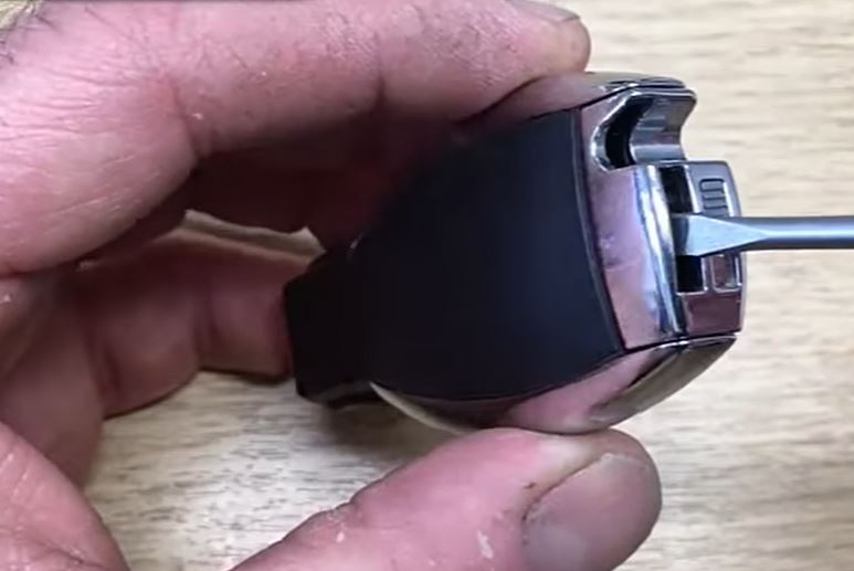Step 2: Slot your flat head screw driver into this hole (not too far) to lift up the back case on the fob.