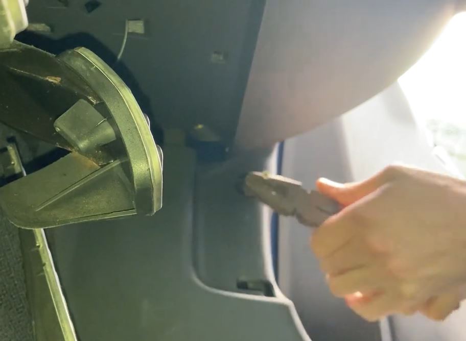 Step 3: Ensure the hole is clean of any debris and then slot your new bonnet release handle into place. You may have to give it a firm tap with your hand to lock it into place.