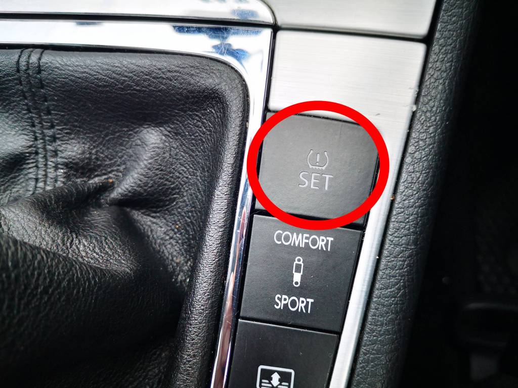 Step 2: On the centre console next to your gear stick you will see this ‘SET’ button. Press and hold this button for 3 seconds until the tyre pressure warning light goes off on your dash and you’re all done!